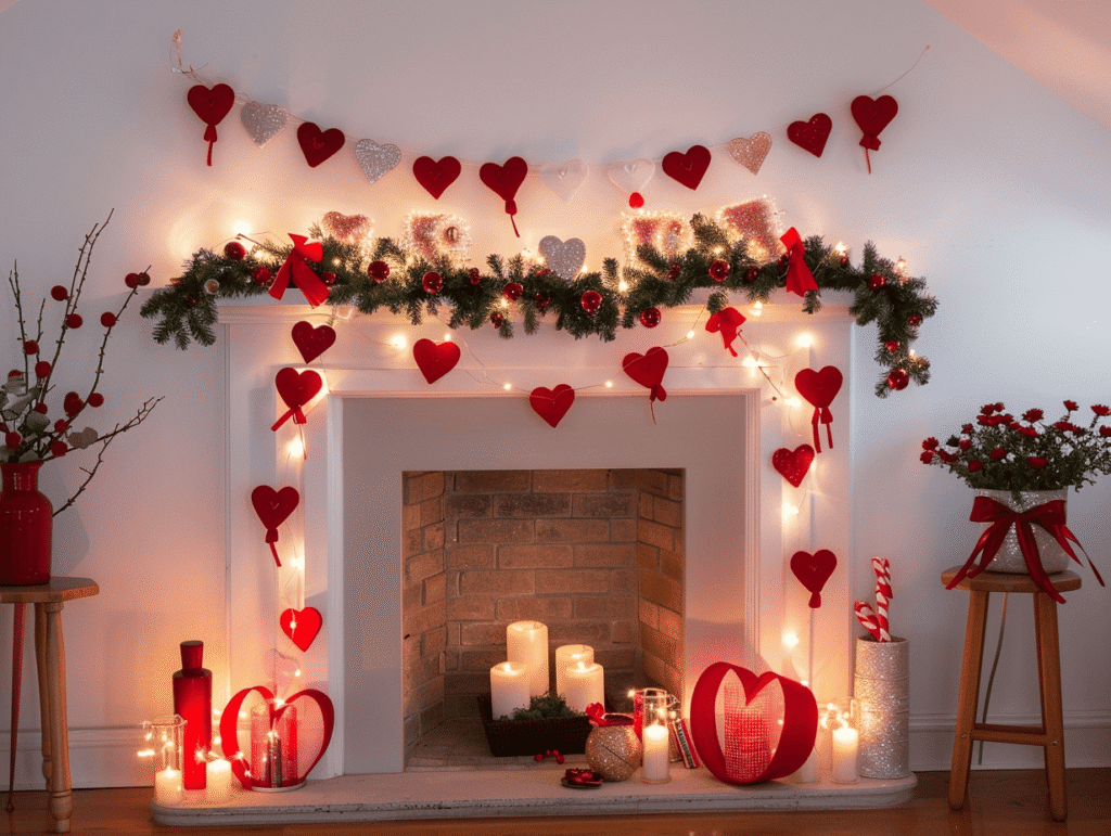 Heart-themed decor is a classic symbol of Valentine’s Day, and a heart-shaped garland brings that charm directly to your mantel. Garlands made from felt, paper, or wood can easily match different decor styles. Draping the garland loosely across the mantel creates a relaxed and festive appearance. Adding subtle sparkle or soft lighting helps the garland stand out without overpowering the space. When paired with other Valentine’s accents, this simple decoration helps tie the entire Sensational Valentine’s Day display together.