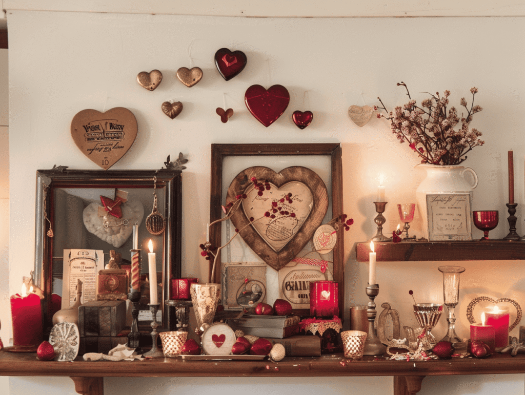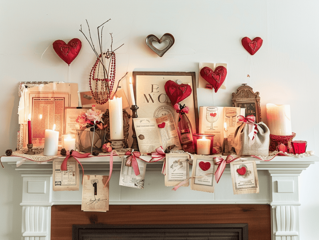 Incorporating sentimental items alongside photos adds depth and authenticity to mantel decor. Displaying keepsakes like ticket stubs, travel souvenirs, or small heirlooms makes the space feel personal and heartfelt. These items tell a story and reflect shared memories, adding emotional value to the design. Handwritten notes or meaningful objects help evoke nostalgia and warmth, making the Sensational Valentine’s Day mantel feel truly unique and intimate.