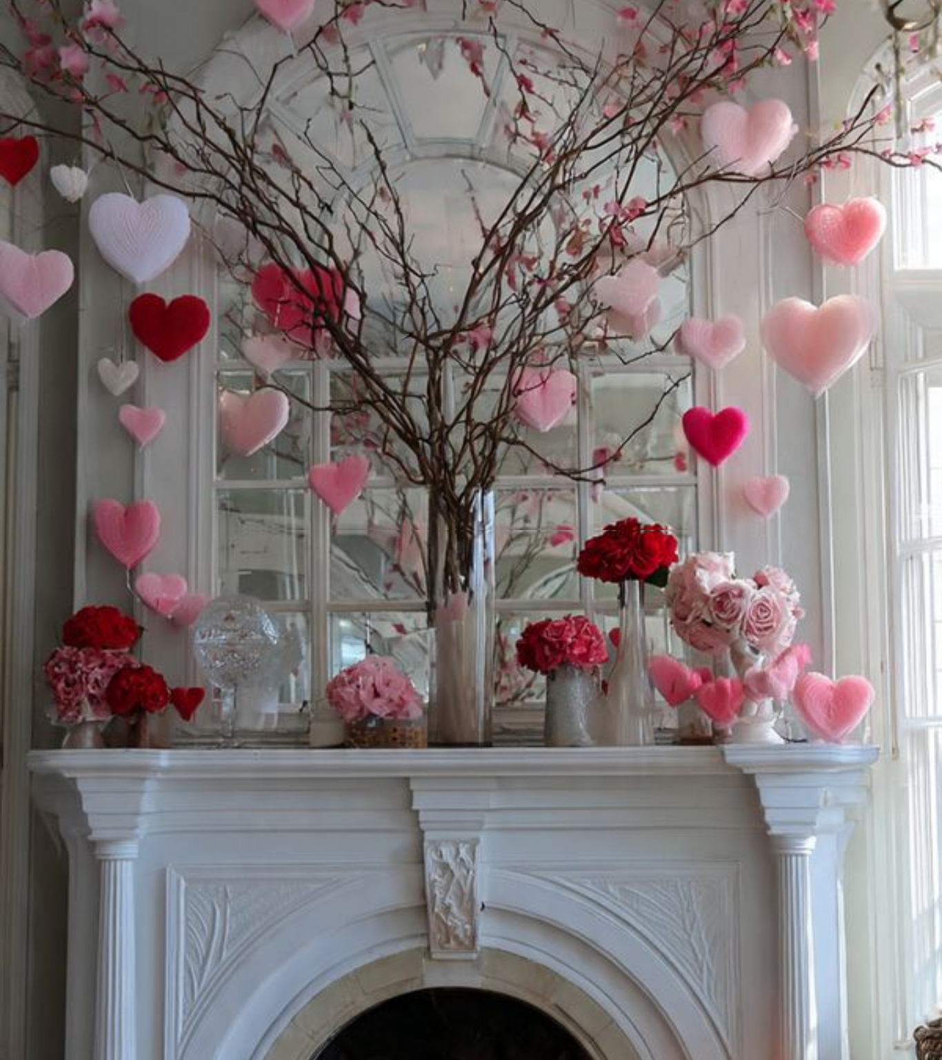 Heart-themed decor is a classic symbol of Valentine’s Day, and a heart-shaped garland brings that charm directly to your mantel. Garlands made from felt, paper, or wood can easily match different decor styles. Draping the garland loosely across the mantel creates a relaxed and festive appearance. Adding subtle sparkle or soft lighting helps the garland stand out without overpowering the space. When paired with other Valentine’s accents, this simple decoration helps tie the entire Sensational Valentine’s Day display together.