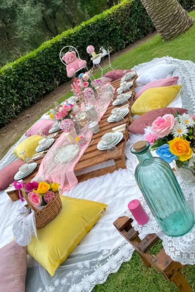 This is one of my favorite Tea Party Ideas for outdoor setups. It feels relaxed and easy to manage.