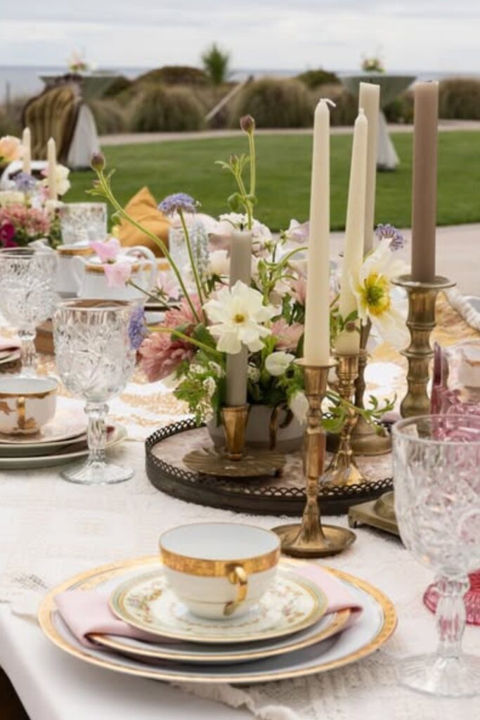 I usually mix candles with light floral arrangements and simple tableware. This combination adds depth without making the table look crowded.