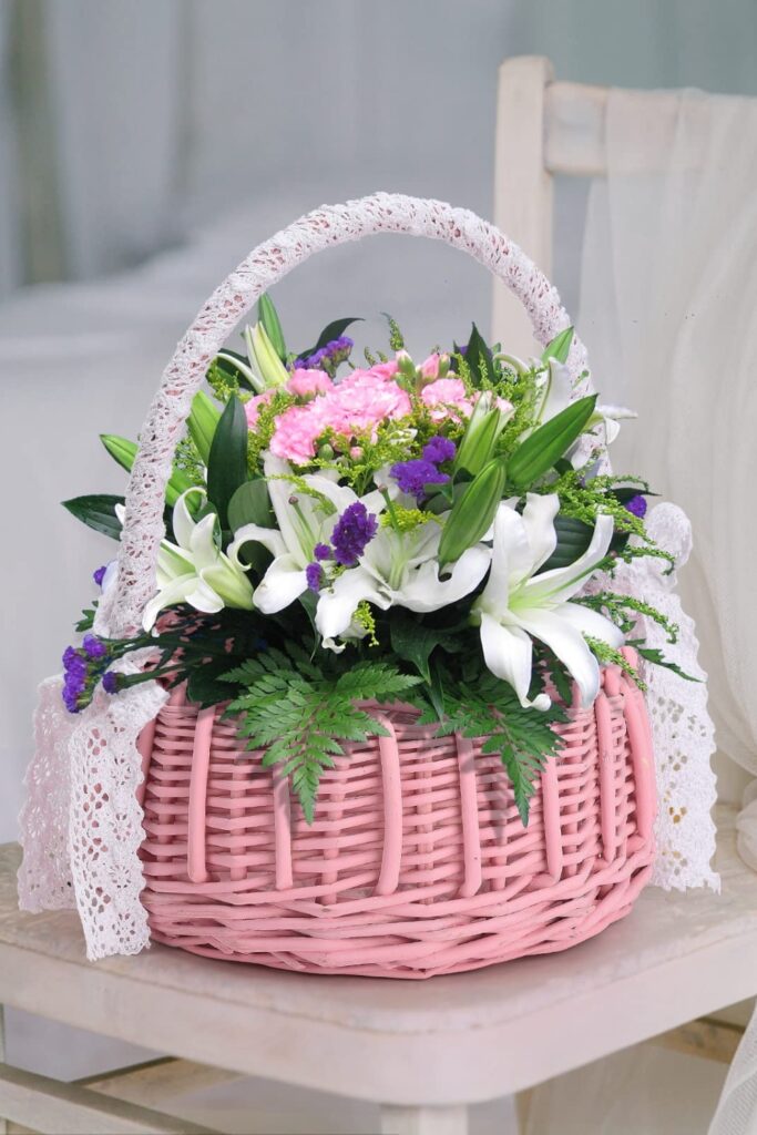 2. Lampshade Basket with Vibrant Pink Blossoms