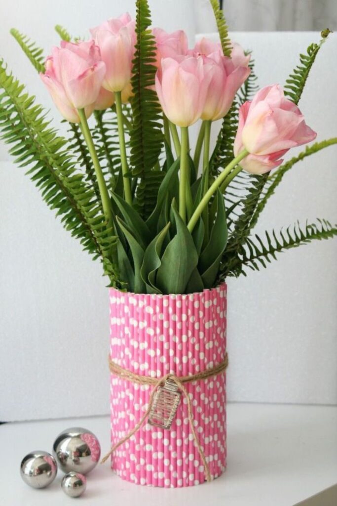 I find this option fun and budget-friendly. Using straws to build a vase gives a creative DIY touch without much effort.