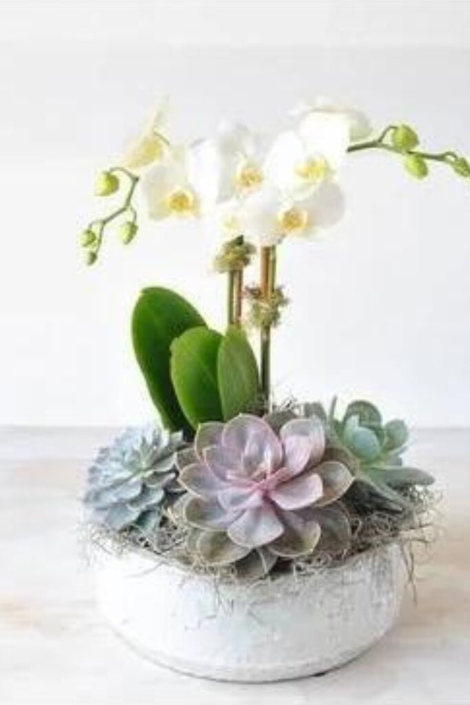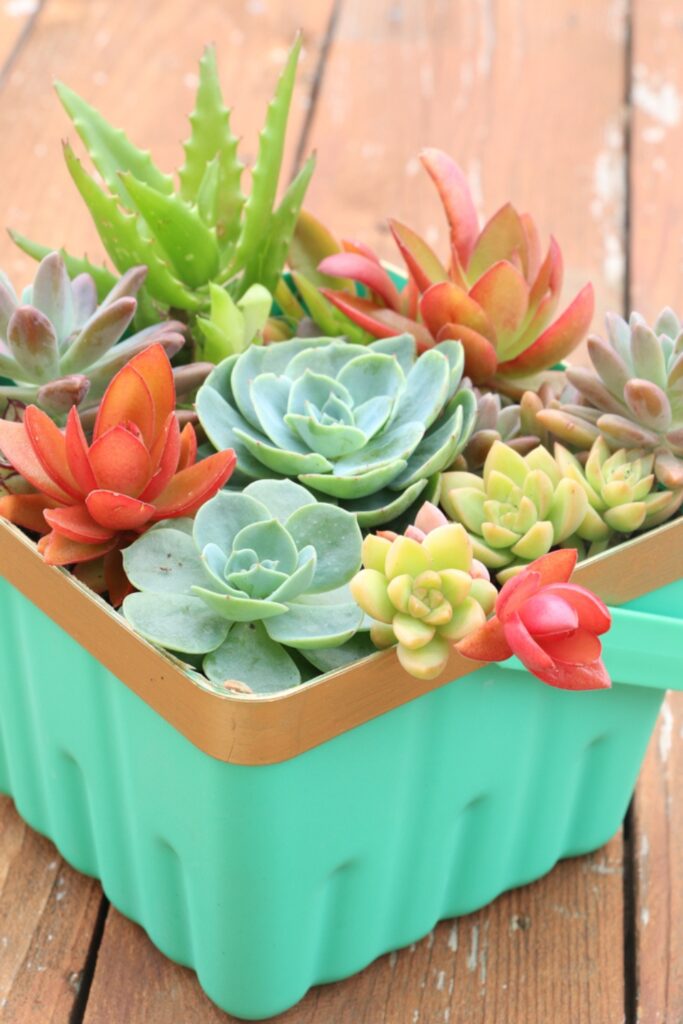 Succulents are one of my favorite choices because they last longer than flowers. They also need very little maintenance.