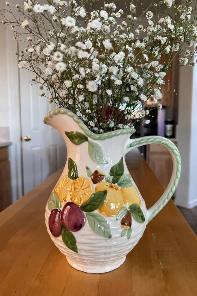 I usually pair it with bright flowers to match the theme. It’s fun and practical at the same time.