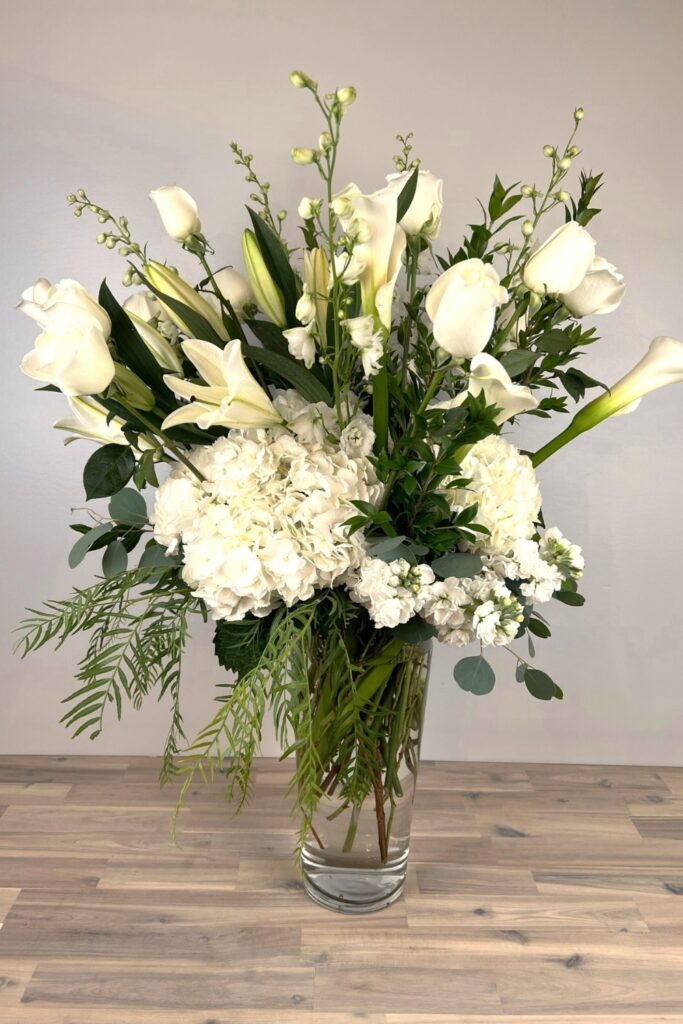 When I want a clean and classy look, I go with white flowers. They always feel calm and organized.