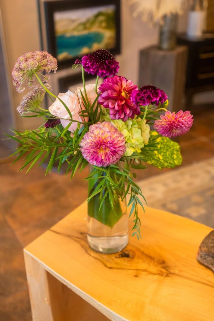 Sometimes I stick to a simple glass vase because it always works. It’s flexible and fits any occasion.