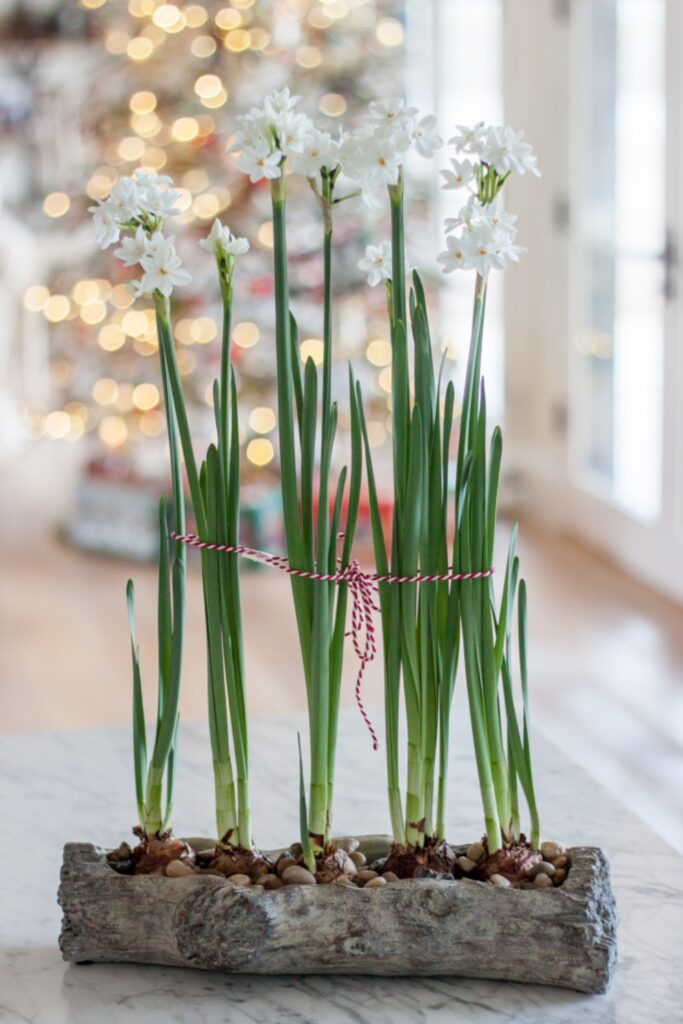 This idea feels creative because the flowers are part of the container itself. Wrapping daffodils around a bowl makes it look fuller.