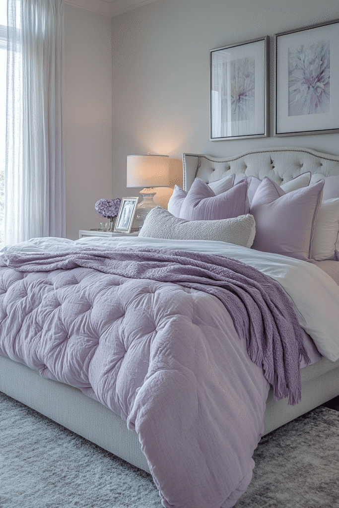 Lavender tones add a dreamy quality to aesthetic home decor. Paired with neutrals, the color feels calming rather than bold. Plush materials increase comfort. Soft lighting completes the peaceful setting.