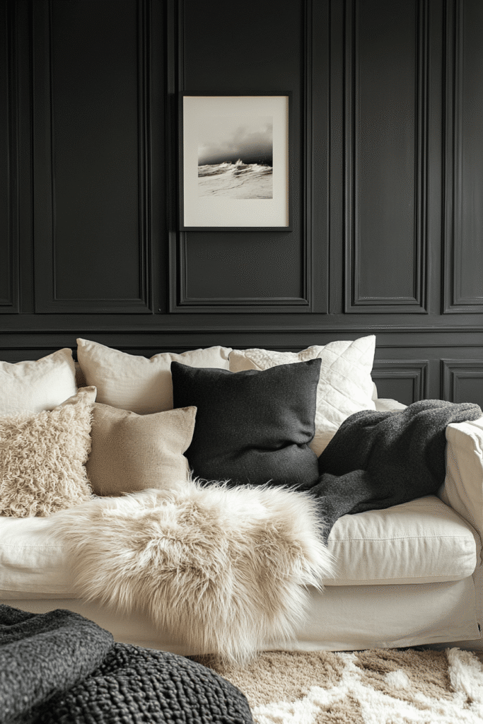 Off-white shades add warmth and softness to aesthetic home decor. Creamy undertones prevent the space from feeling cold. Plush materials increase comfort. Lighting enhances the gentle palette.