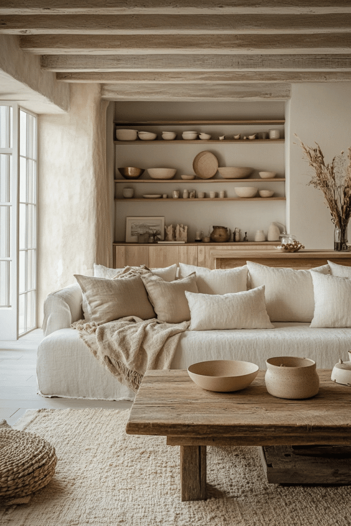 Different shades of white add depth to aesthetic home decor. Texture replaces color for interest. Soft materials keep the look balanced. The space feels clean and calming.