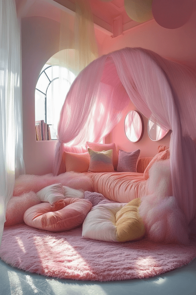 This style introduces softness and imagination into aesthetic home decor. Pastels and plush textures create warmth. Curved shapes enhance comfort. The space feels dreamy and cozy.