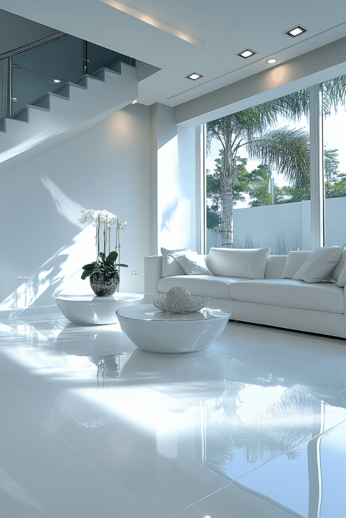 Bright white surfaces add clarity and freshness to aesthetic home decor. Smooth finishes reflect light, making the room feel modern and open. Balanced lighting prevents the space from feeling too stark. The overall look is clean, bright, and stylish.
