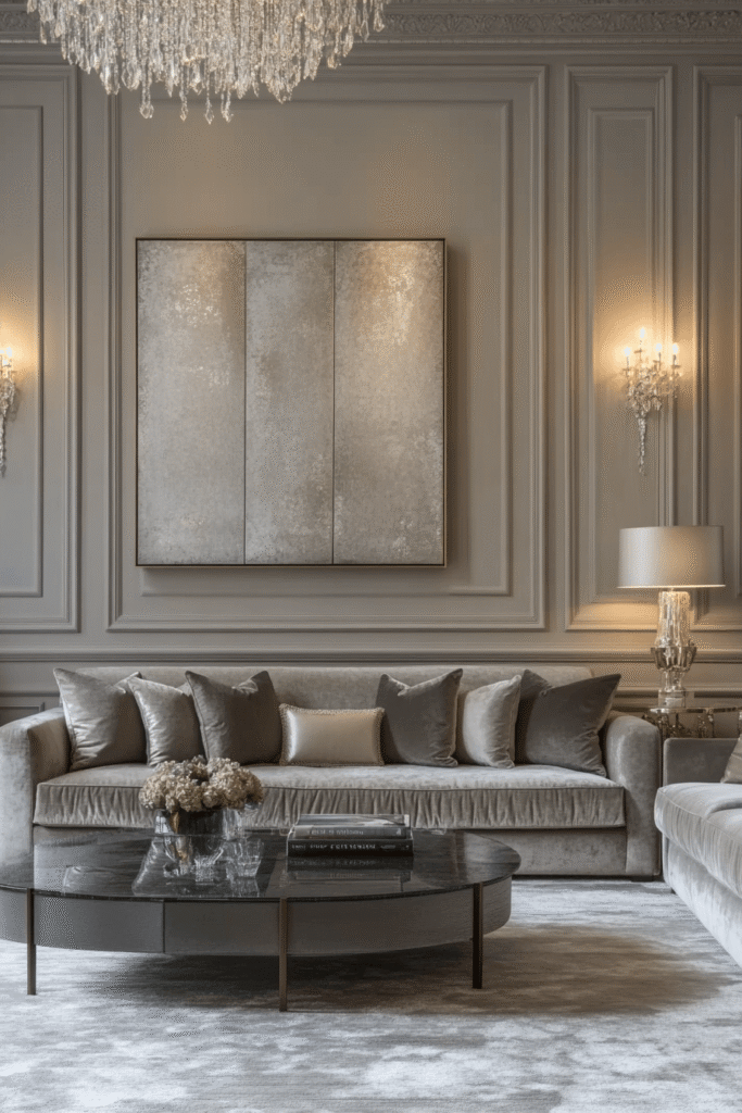 Soft gray tones create balance and depth in aesthetic home decor. Different textures prevent the space from feeling flat. The mix of finishes adds quiet interest. The overall mood remains calm and modern.