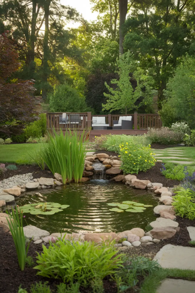 Installing a backyard pond adds tranquility and supports local wildlife. Aquatic plants like water lilies, cattails, or reeds enhance the natural look while maintaining ecosystem balance. A small fountain or water feature can amplify the calming effect, turning your backyard into a peaceful retreat.