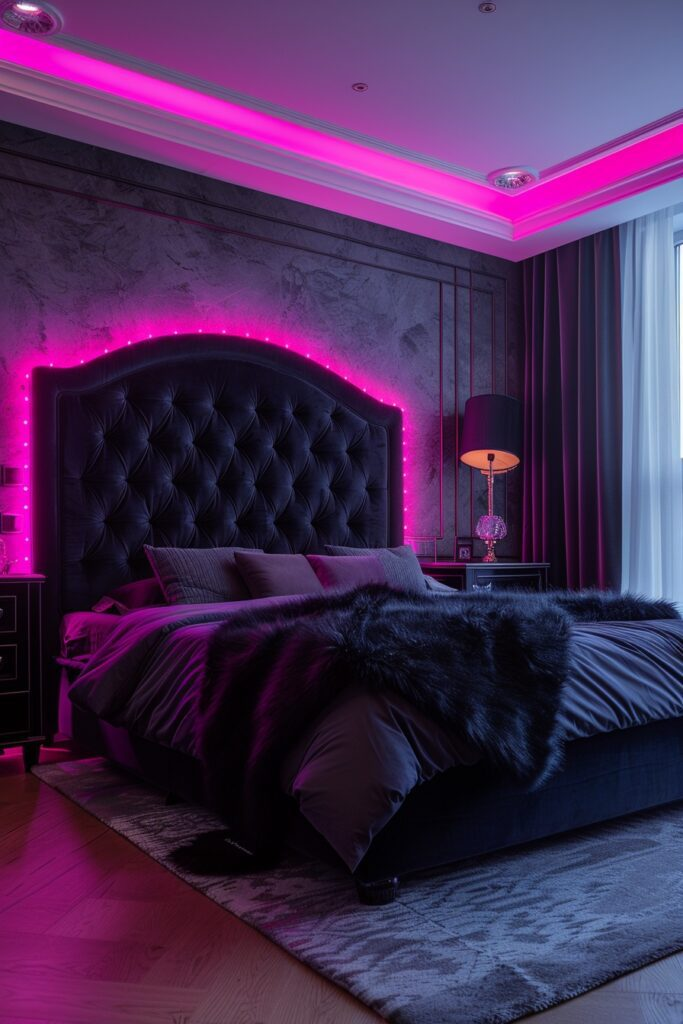 Midnight Glam Baddie Bedroom with LED Highlights