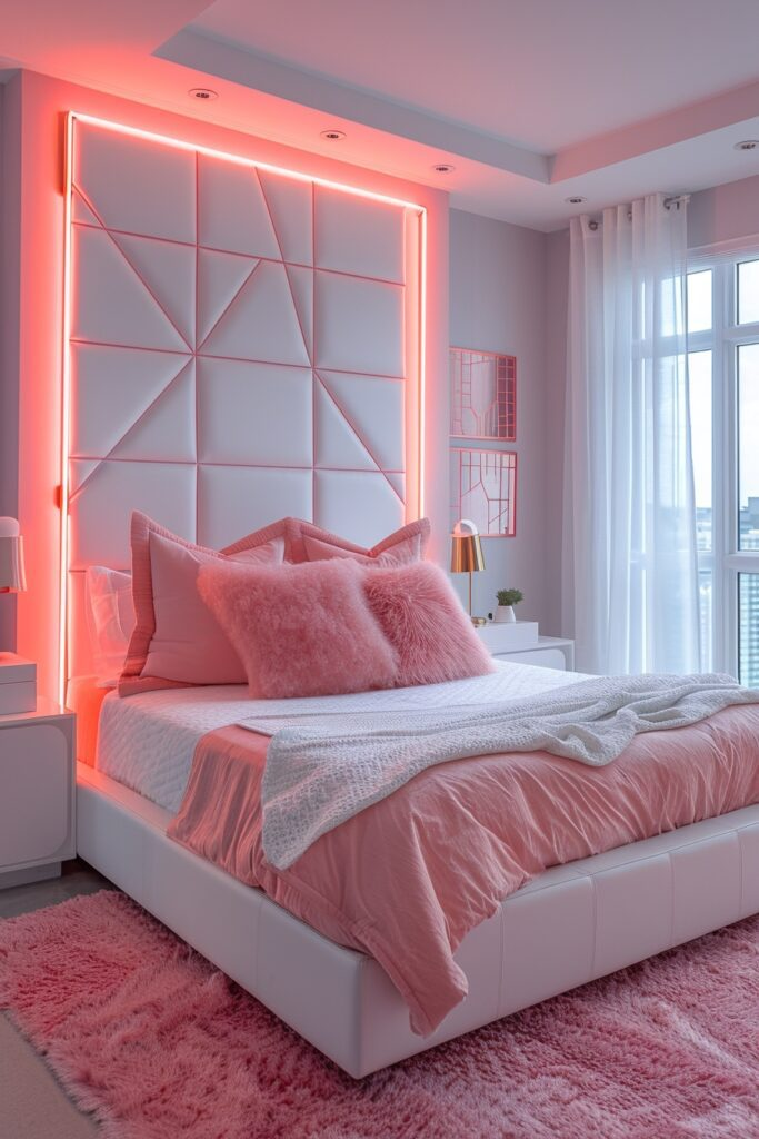 Bold Blush Baddie Bedroom with Neon Glow
