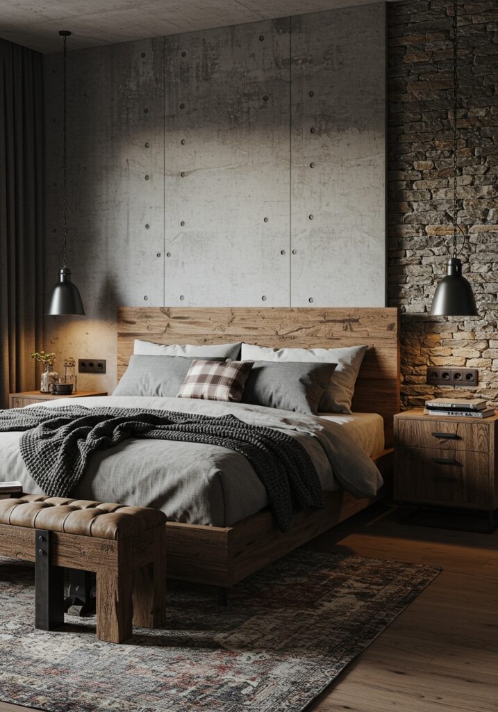 Industrial details can instantly give your bedroom a bold edge. Materials like metal, reclaimed wood, and raw finishes add character while keeping the design masculine. A metal bed frame, exposed-style lighting, or a sturdy shelving unit can bring subtle urban energy into the room. The goal is not to make the space feel cold, but to blend rugged textures with comfort. When balanced correctly, industrial elements add depth and personality to Bedroom Decor Ideas for Men without overwhelming the overall vibe.