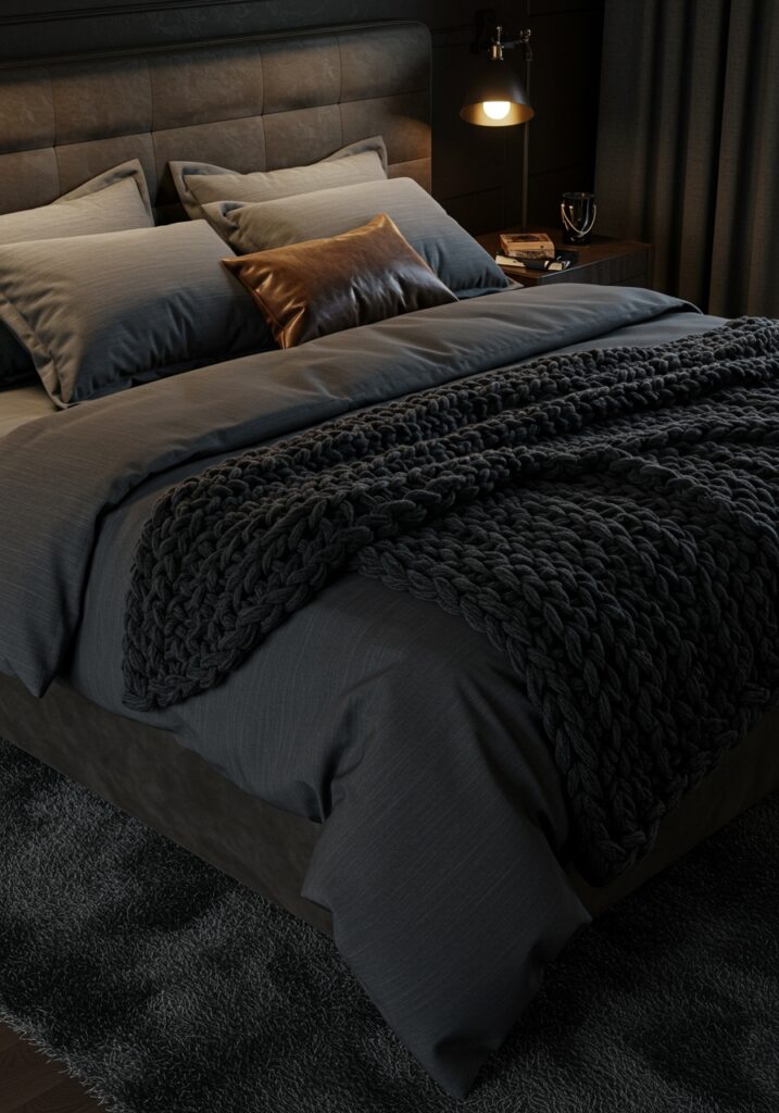 A bold headboard can transform the bed into a strong focal point. Upholstered options in leather or textured fabrics add comfort and character, while wood or metal designs offer structure and edge. Choosing a larger or uniquely shaped headboard can elevate the room without adding clutter. Pair it with simple bedding to maintain balance. A strong headboard anchors the design and reinforces the masculine style of the bedroom.
