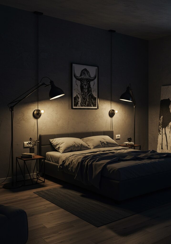Matte surfaces bring a subtle yet strong presence to a room. Unlike glossy finishes, matte textures feel understated and contemporary. Matte black hardware, furniture, or lighting fixtures can instantly sharpen the look of the space. Even walls painted in matte tones can create a soft but powerful backdrop. This finish works well in Bedroom Decor Ideas for Men because it adds depth without appearing flashy or overdone.