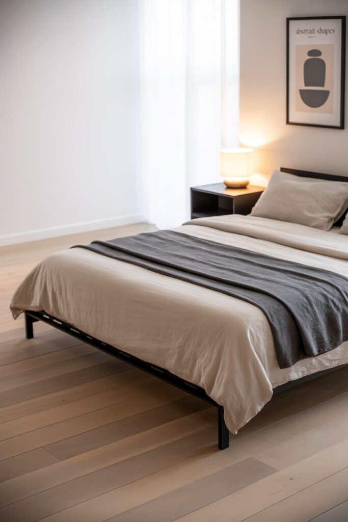 Scandinavian-inspired bedrooms use black furniture sparingly to create contrast against white walls and light wood flooring. Functional, minimalist decor and uncluttered surfaces maintain a clean, serene aesthetic. The mix of black accents within Scandi design emphasizes simplicity while keeping the space inviting.