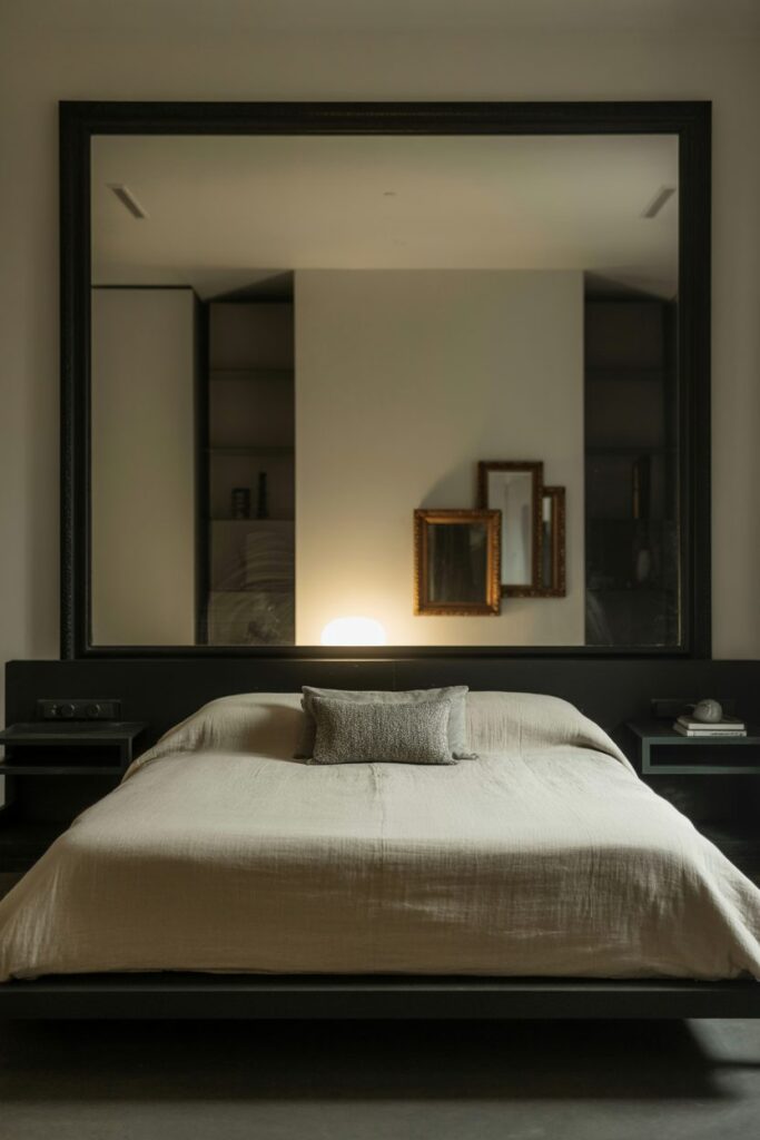Mirrors with black frames complement black furniture while adding dimension to the room. Large floor mirrors expand the space visually, while smaller decorative mirrors can be grouped for impact. Black frames unify the decor and contribute a modern edge that enhances the overall design.