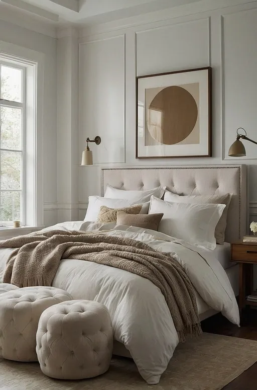 If plain white feels too stark, adding a touch of cream softens the room. This gentle warmth keeps the space feeling fresh while making it feel more inviting and comfortable. It’s perfect for creating a serene bedroom that still feels cozy.