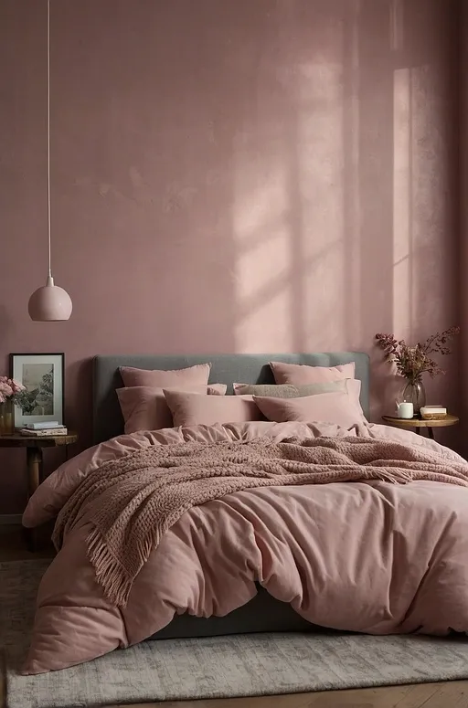 Dusty rose pink is soft and romantic. It brings just the right amount of color to a room, creating an elegant yet welcoming environment. This shade works wonderfully with neutral tones or light woods, giving your bedroom a gentle, nurturing vibe.