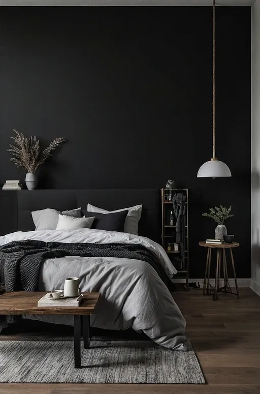 A black accent wall can transform a bedroom instantly. It’s bold, chic, and dramatic, adding depth and personality. Combined with cozy furnishings, it can make the space feel modern yet intimate.