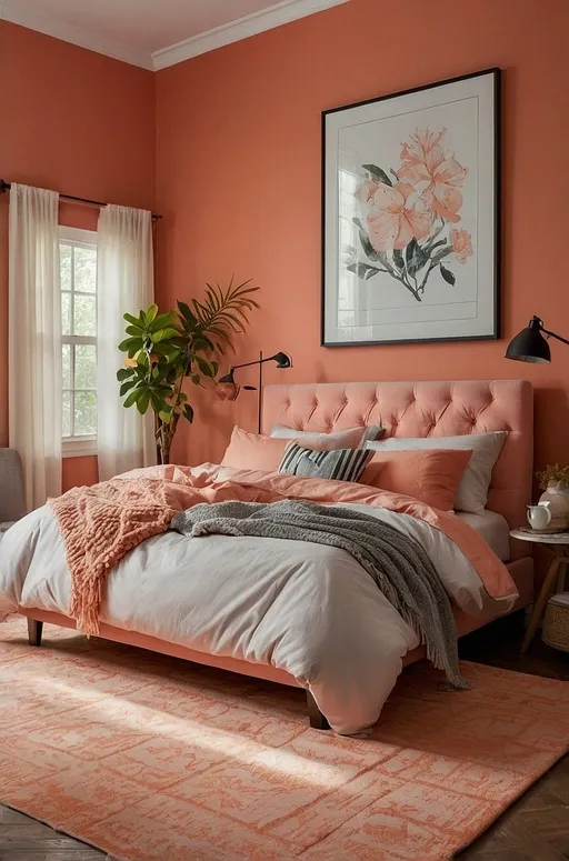 Coral peach brings warmth, energy, and joy into the bedroom. It’s vibrant but soft enough to keep the space inviting. This shade adds playful character while still feeling restful.