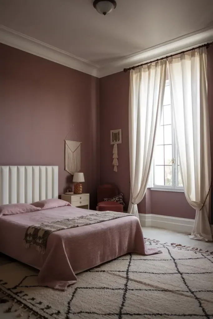 Smoky mauve is soft, calming, and quietly beautiful. It balances subtle richness with a soothing tone, helping create a restful bedroom environment.