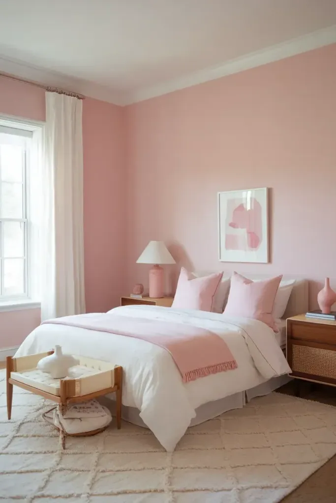 Muted blush pink is soft and calming. It adds a gentle elegance without overwhelming the room. This shade creates a peaceful environment where you can unwind while still feeling stylish.