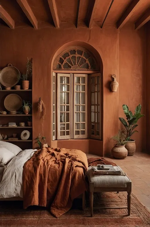 Terracotta draws inspiration from clay and natural earth tones. It’s warm, rustic, and cozy, ideal for bedrooms with bohemian or natural décor styles.