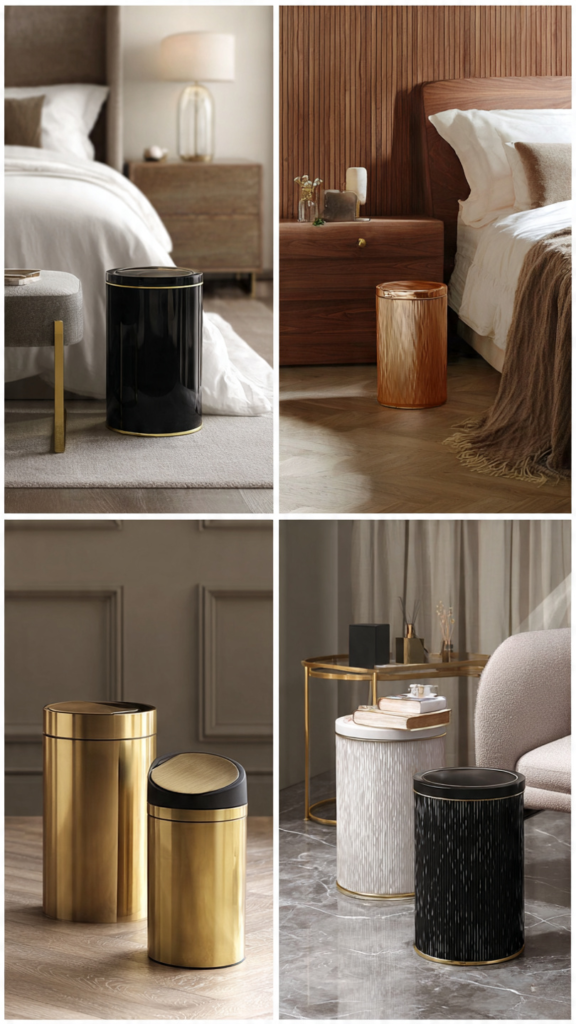 A trash can can blend into bedroom decor when chosen thoughtfully. Matching colors with the room’s palette helps it feel intentional rather than hidden. Placing it beside furniture or under desks keeps it discreet. Decorative or textured designs can add warmth, while coordinating finishes with furniture creates visual harmony. Bedroom Trash Cans can enhance the room when they align with the overall design approach.