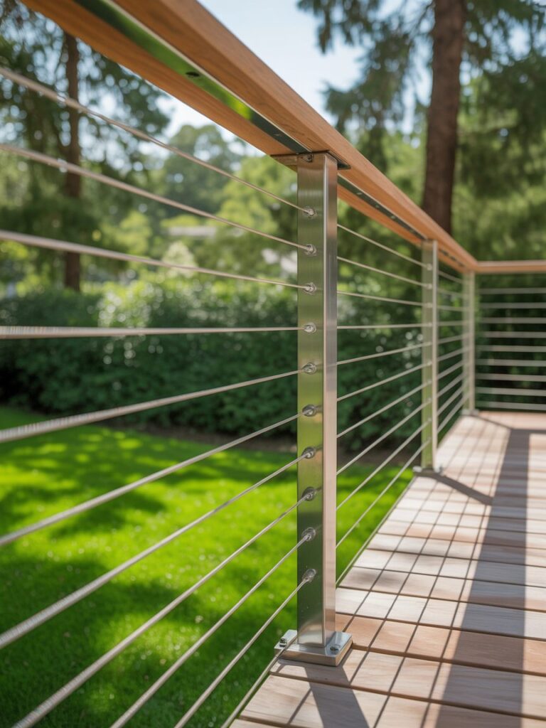 Cable railing gives a nearly invisible look, which is perfect if you have a garden or view. It allows light and scenery to stay the focus.