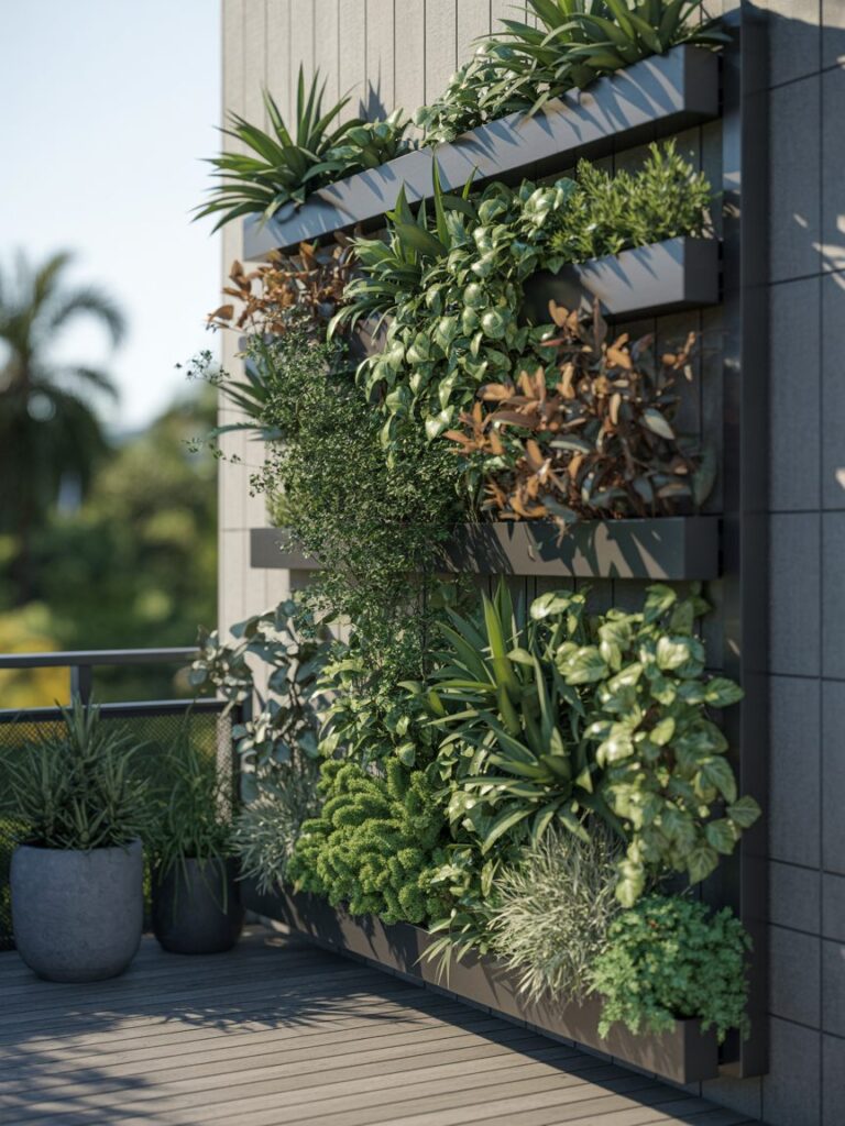 A vertical plant wall added color and life. It turned the railing into a feature.