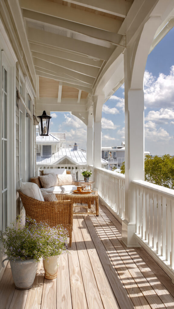 White railings with wood decks create a timeless look. It feels clean but still warm.