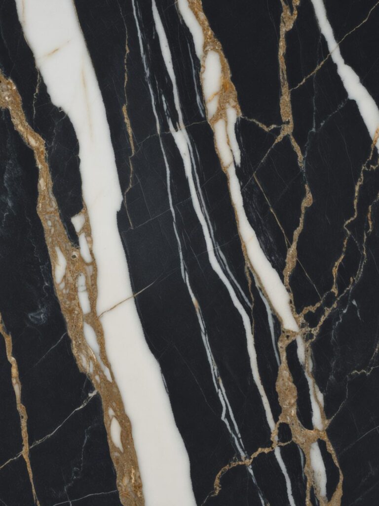 Using black marble with strong veining is one of the best ways to add visual interest. It breaks the monotony and acts as a focal point.
