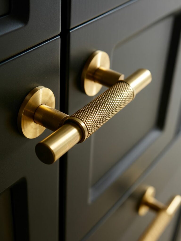 Adding gold or brass handles can completely change the look. It adds warmth and contrast, making the kitchen feel more premium.