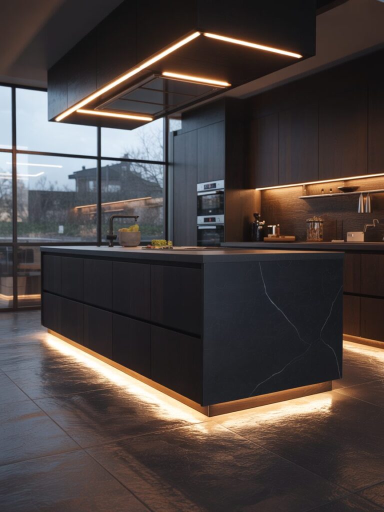 When I design a dark kitchen, I don’t just rely on color. I focus on layers—light, material, and finish. Research shows darker kitchens are trending in over 35% of modern remodels, but the successful ones always include contrast elements like stone, wood, or metal. Without that, the space feels heavy instead of refined.