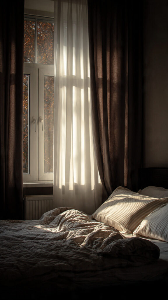 Darker fabrics absorb more light rather than reflecting it, which lowers visual stimulation. When curtains blend with wall colors, the room feels unified instead of fragmented. This consistency can make it easier for the mind to relax at bedtime.