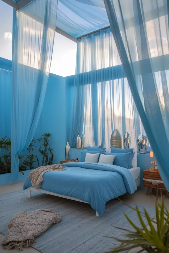 I have tried pairing sky-blue bedding with a light canopy, and it creates a soft, dreamy atmosphere. Small details like star lights or moon-themed decor add a peaceful and slightly magical touch. A hint of metallic accents gives the room a subtle glow.