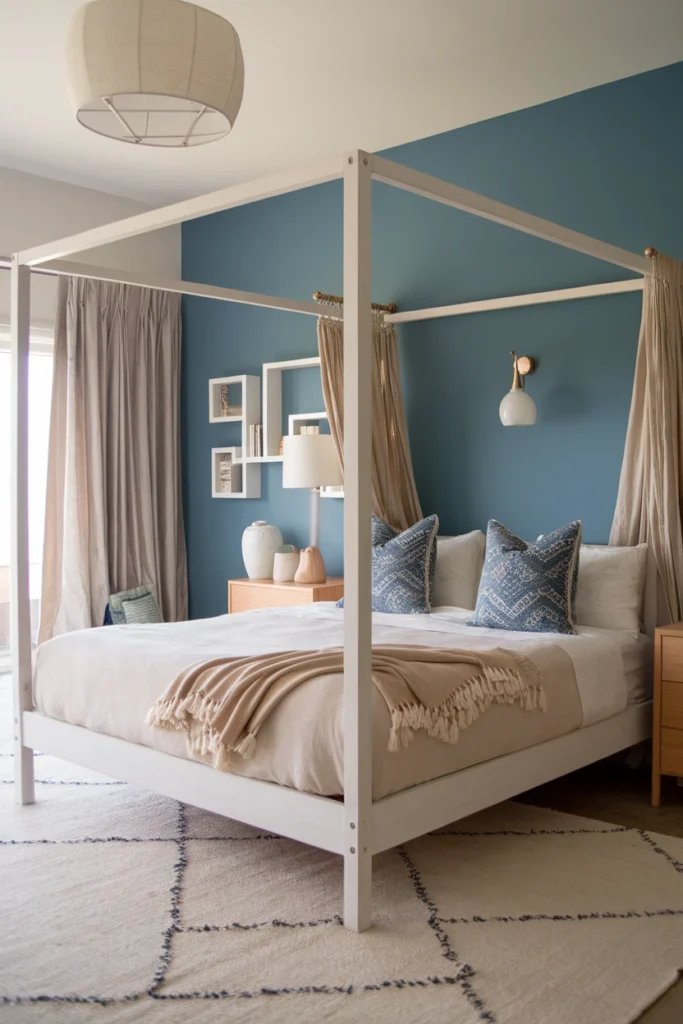I have tried softer blue shades with white tones for a calm and simple look. Adding textures like linen and woven decor keeps the room interesting. This style feels clean yet cozy.