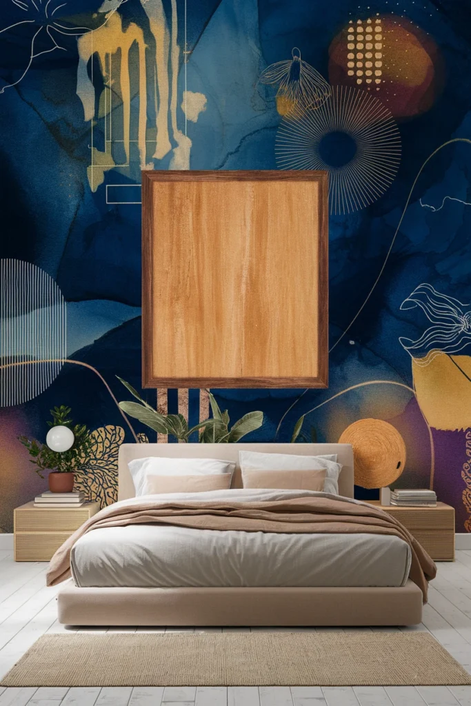 I have used bold blue wallpaper to create a statement wall that adds personality. Keeping the rest of the decor simple helps balance the design. This approach makes the room look modern and creative.