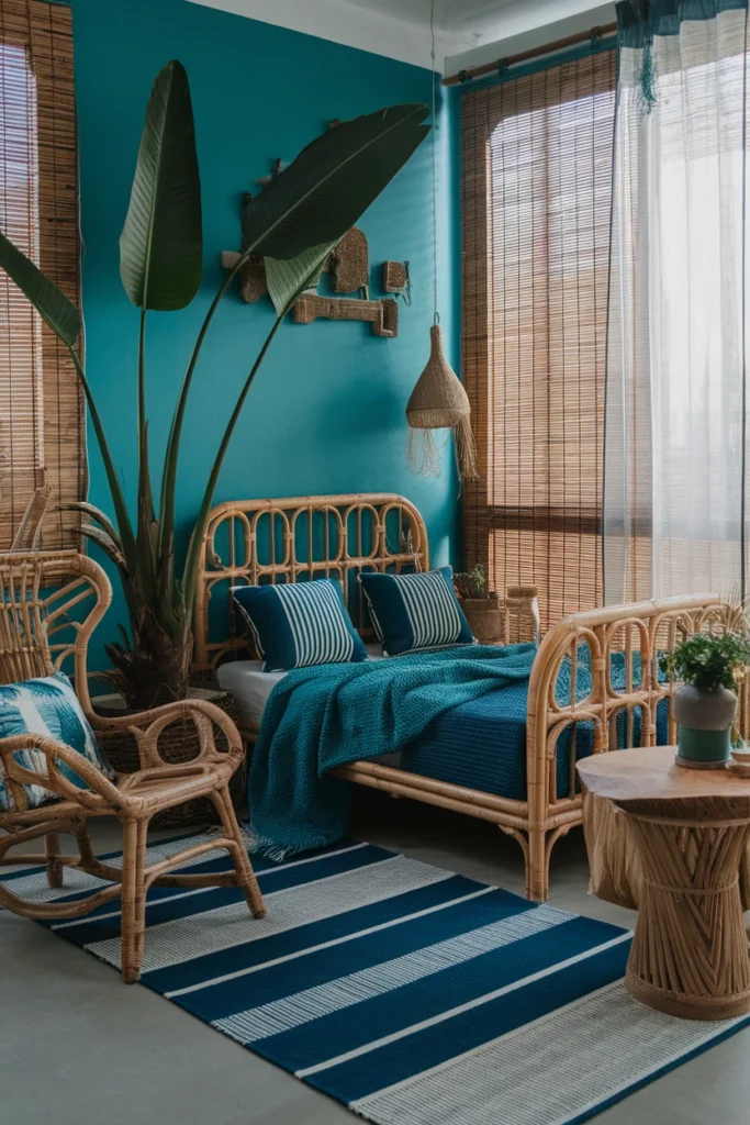 I have used rattan furniture with blue shades like turquoise, and it brings a natural and relaxed feel. Adding woven baskets and indoor plants helps connect the whole look. This combination makes the space feel warm and inviting.