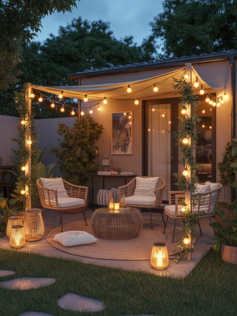 Lighting can completely change how your patio feels, especially during the evening. A well-lit space feels warm, inviting, and even a bit magical. Boho Garden Patio Ideas often focus on soft and layered lighting to create a calming atmosphere that encourages you to spend more time outside.