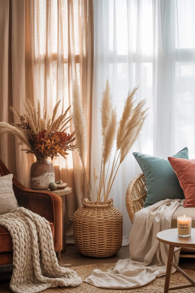 Decorative accents on coffee tables or shelves can be updated as well. Dried flowers, pampas grass, or natural branches can introduce subtle seasonal changes without requiring a complete redesign. This approach keeps your living room feeling fresh and interesting all year.