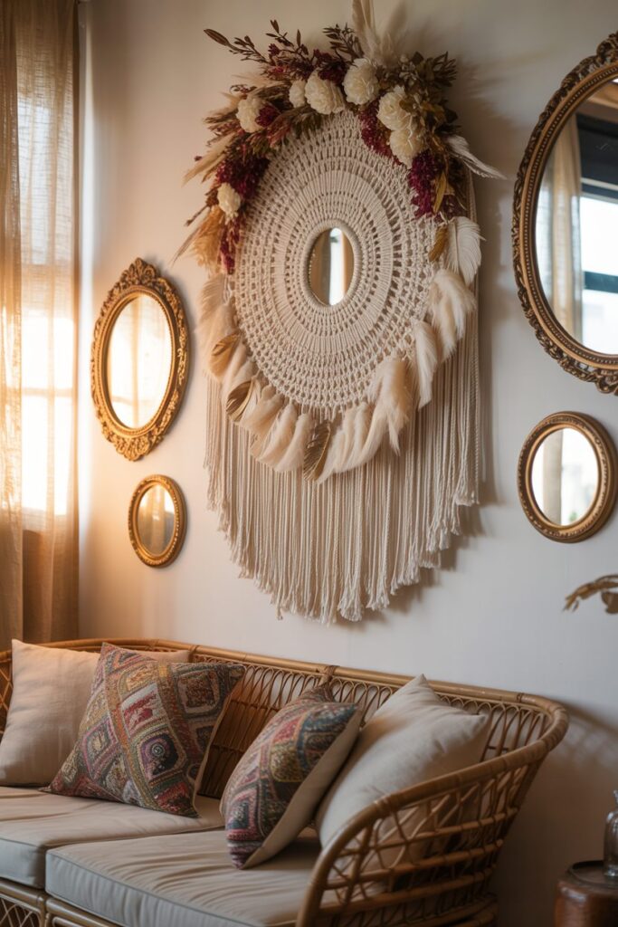 Large pieces of art, colorful tapestries, or handmade macramé hangings can serve as strong focal points. Some homeowners prefer gallery walls filled with prints, photographs, and small artworks arranged together. Another fun approach is decorating with mirrors of different shapes and sizes, which reflect light and make the room feel brighter.