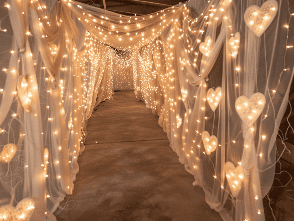 Draping them across walls, ceilings, or shaping them into subtle heart forms adds charm without clutter. Pairing string lights with lightweight fabrics or wall hangings diffuses the light, creating a dreamy atmosphere that feels gentle and intimate once the sun goes down.