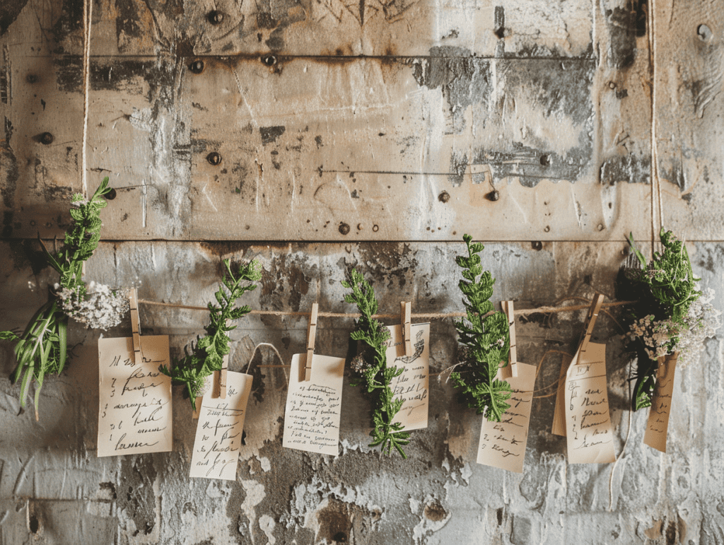 Using kraft paper or vintage-style stationery adds warmth and texture. Including photos, greenery, or small keepsakes makes the display feel emotionally rich. This kind of décor goes beyond decoration and becomes a reminder of shared memories and affection.